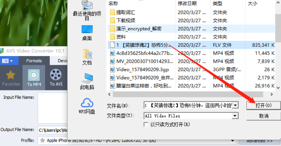 2.点击添加文件之后,我们在出现的选择文件界面中,选中目标视频文件之后点击界面右下角的打开按钮即可。