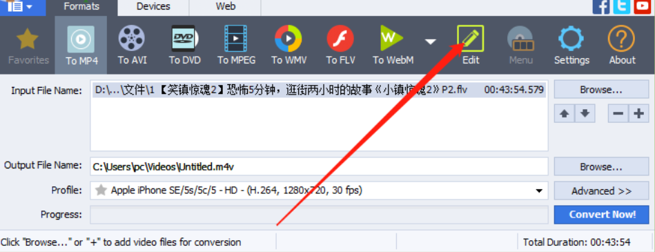 3.点击打开按钮之后在软件界面中就可以看到添加进来的视频文件了,然后我们点击上方的Edit这个编辑功能图标。