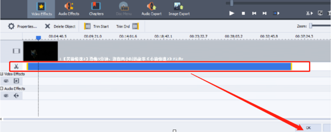 6.通过上一个步骤我们选择好剪切的视频片段之后,点击编辑界面右下角的OK按钮即可保存编辑操作。