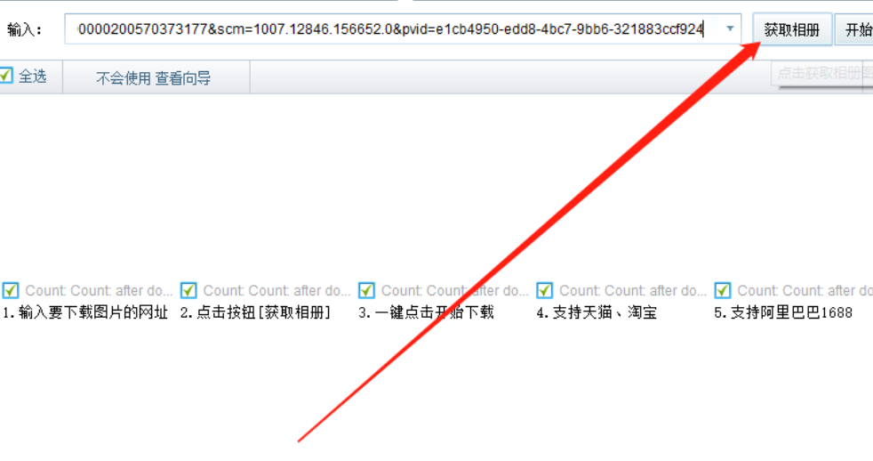 2.将商品链接复制到输入框之后我们就可以点击获取相册这个按钮来开始获取链接中的商品图片相册了。