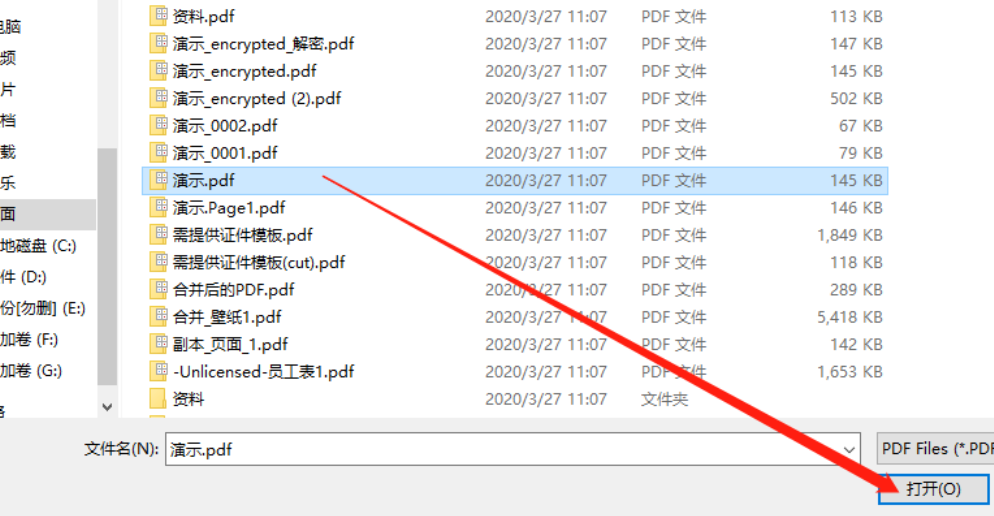 2.点击添加文件按钮之后接下来在出现的选择文件界面中,我们选中想要拆分的PDF文件之后点击右下角的打开按钮即可。