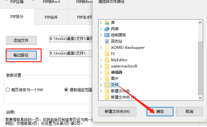 3.成功选择要拆分的PDF文件之后,下一步是在界面中点击输出路径这个功能按钮,然后在出现的界面中选择文件的输出储存位置。