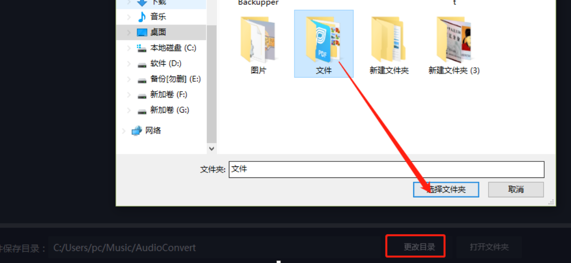 4.调整好合并音频的顺序之后点击界面下方的更改目录按钮即可打开选择文件输出路径的界面,我们根据个人的需求来选择设置即可。