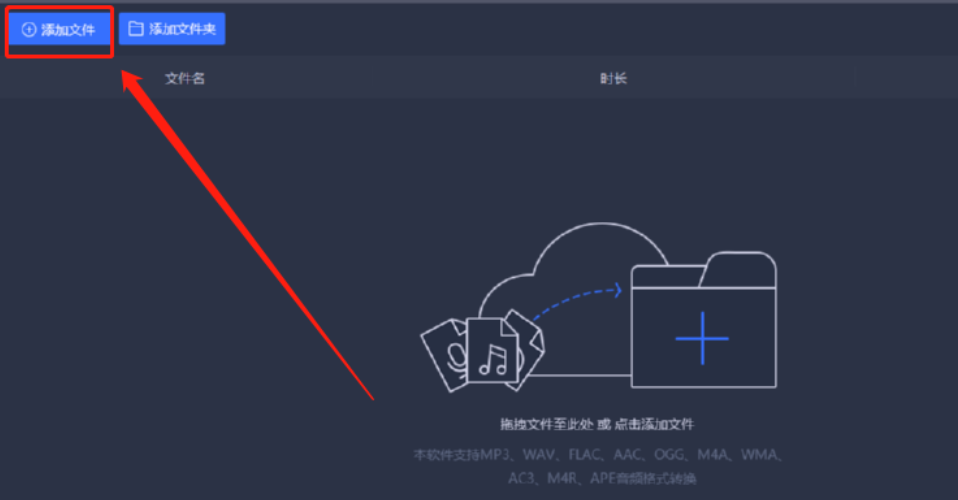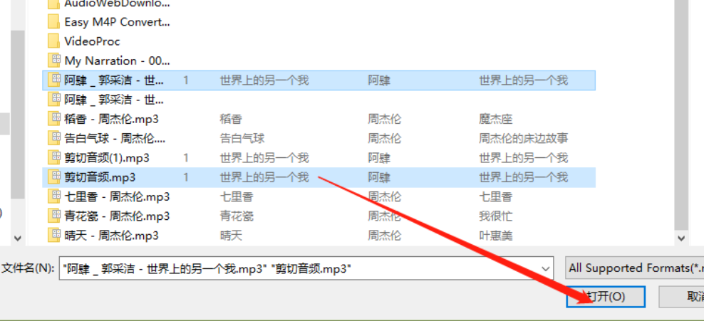 2.点击这个添加文件按钮之后我们在打开的选择文件界面中选中音频文件之后点击右下角的打开按钮。