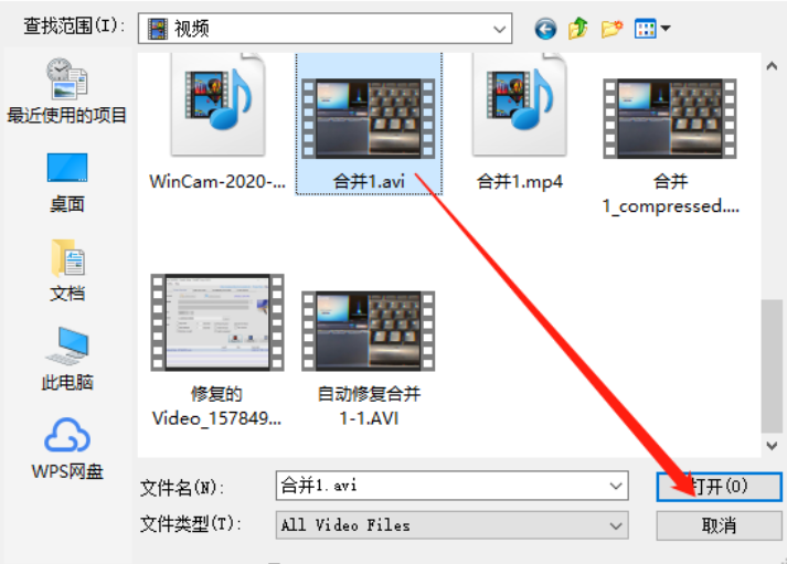2.点击加载视频文件之后会打开一个选择文件的界面,在这个界面中我们选中目标视频文件之后点击打开按钮即可。