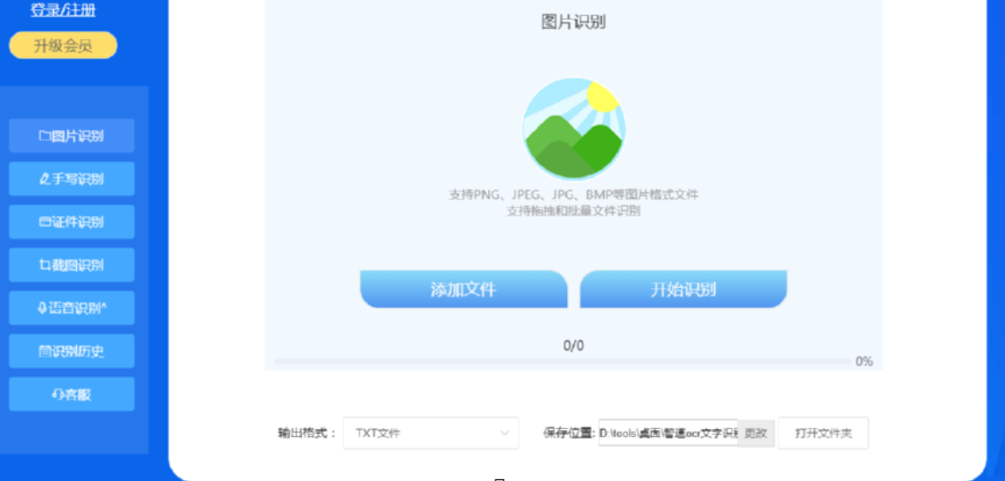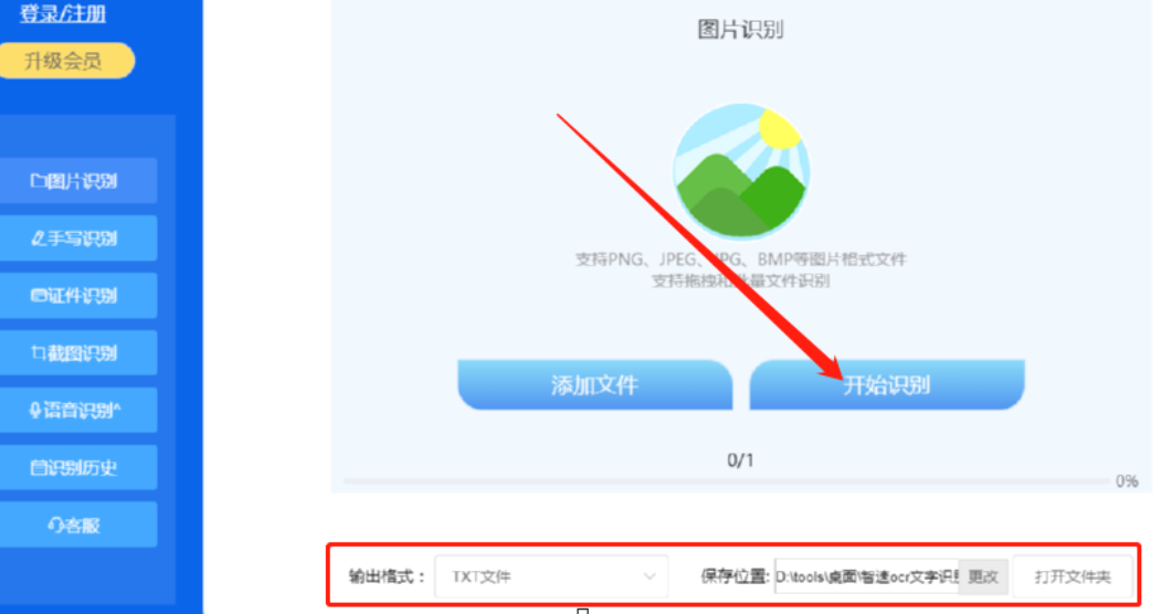 5.最后我们在设置好输出格式和保存位置之后就可以点击界面中的开始识别这个功能按钮来开始识别图片文字了。