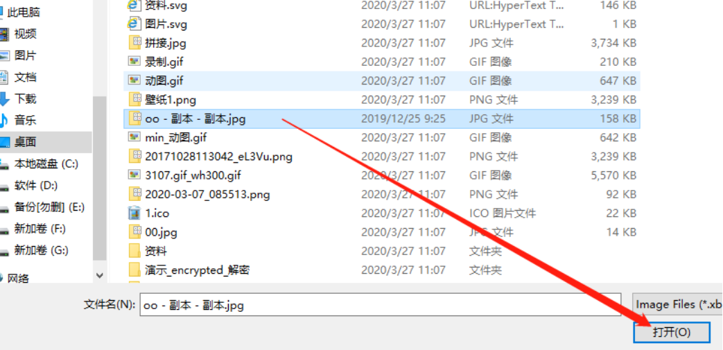 2.点击添加文件按钮之后会打开一个选择文件的界面,在这个界面中我们选中目标图片文件之后点击右下角的打开按钮。