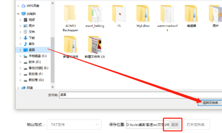4.设置好输出文件格式之后下一步点击保存位置的更改按钮可以更改识别文件的输出储存位置,这样方便用户查找。