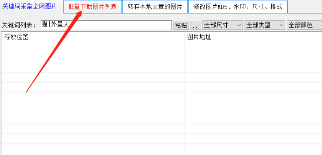 1.首先第一步我们点击打开软件之后,软件键中选择批量下载图片列表这个功能选项,然后点击切换到这个功能界面中。