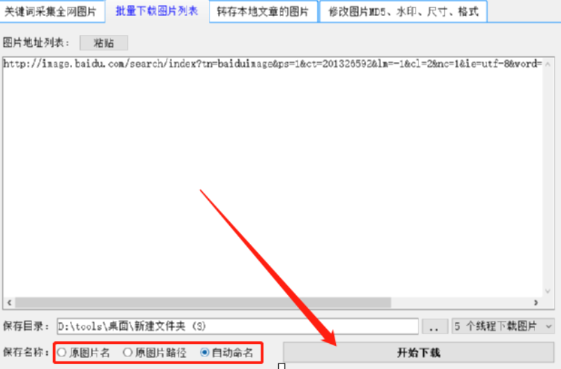 4.设置好输出路径之后,下一步我们在保存名称这里可以选择保存图片的名称命名方式,选择之后点击开始下载按钮即可。