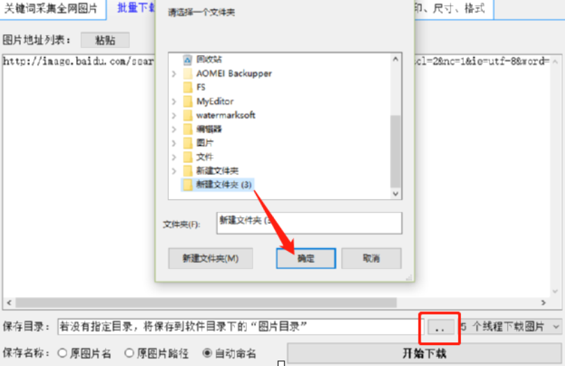 3.下载图片的网页链接复制成功之后,我们点击下方的保存目录选项右边的两点图标可以打开选择图片输出保存位置的界面,用户可以根据自己的需求来选择输出路径。