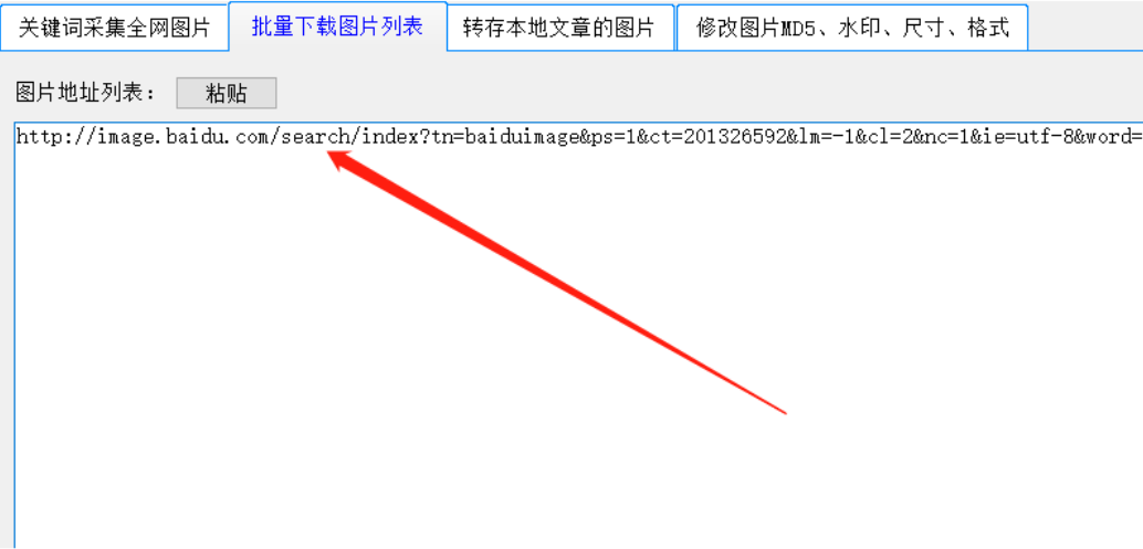 2.切换到这个功能界面之后,我们就将自己想要下载图片的网页链接复制到输入框里面,也就是图片地址列表,有多个链接的话每一行粘贴一个链接即可。