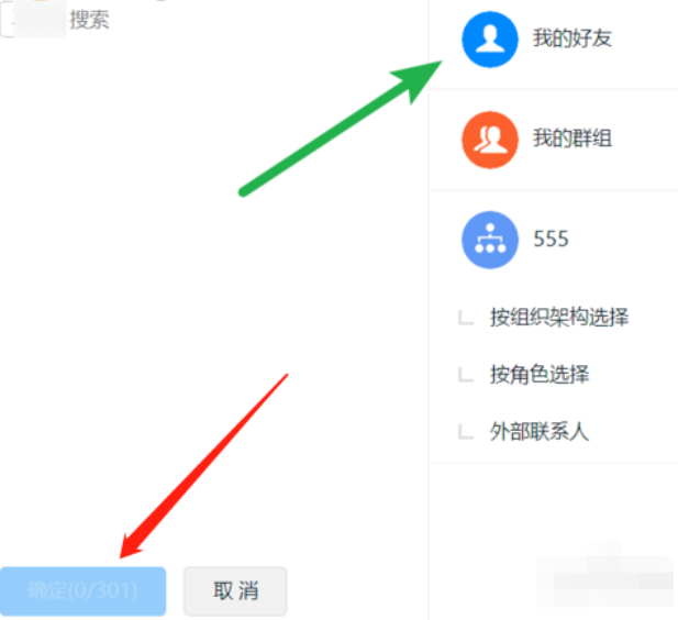 4.最后在邀请好友的界面我们选中所有要邀请的好友之后点击右下角的确定按钮就可以发起视频会议邀请了,别人点击进来之后就可以开始视频会议了。