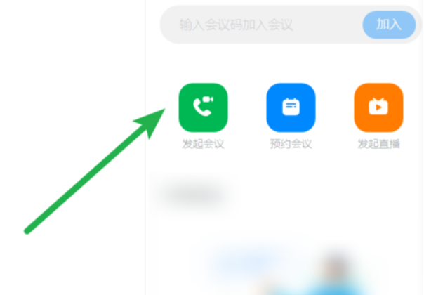 2.点击电话图标之后就会打开一个功能界面,其中就有视频会议功能,然后我们点击发起会议这个功能按钮。