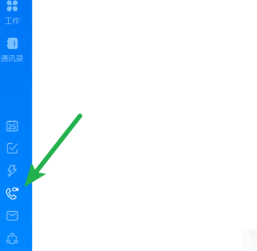 1.首先第一步我们在电脑上登录钉钉之后,在登录之后的界面左下角找到电话图标并点击,如下图中所示。