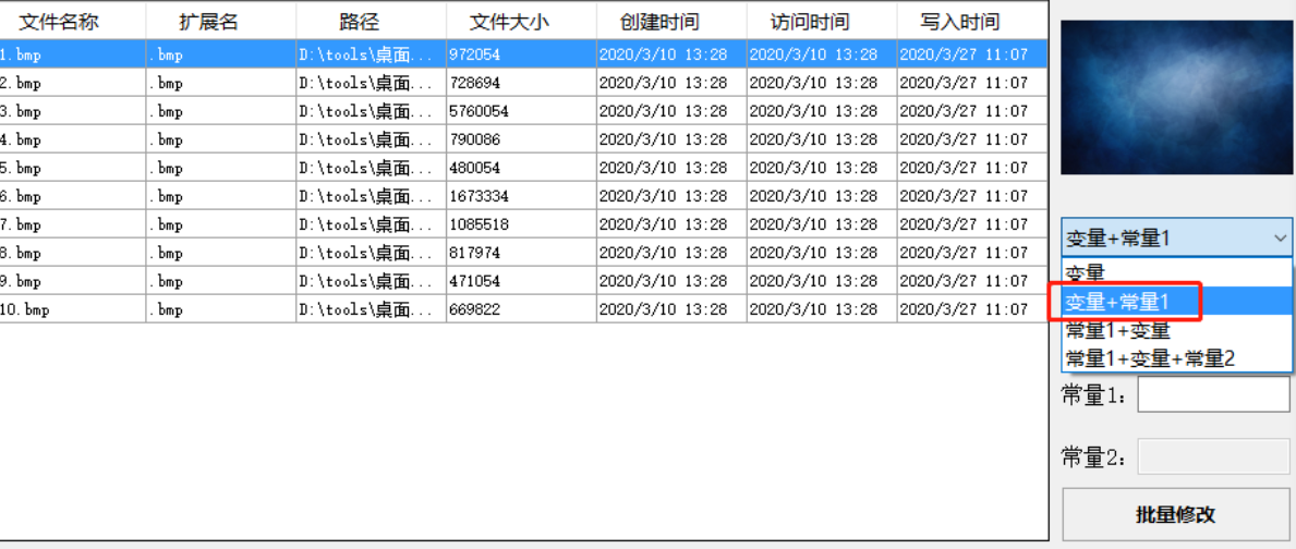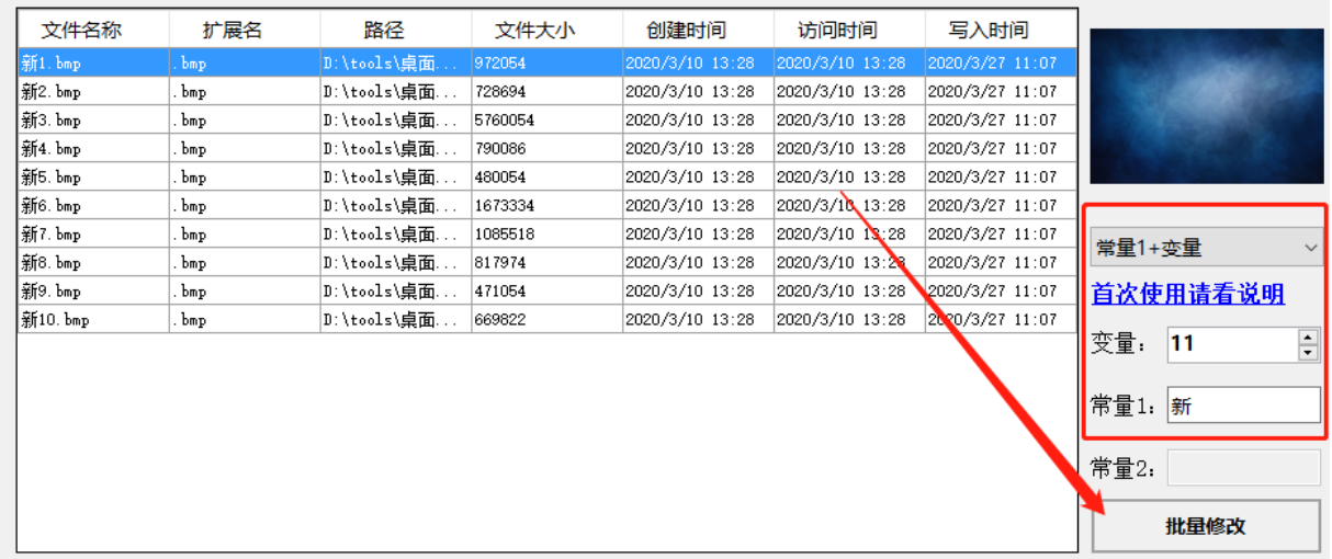 5.大家根据自己的需求设置好重命名文件的变量或常量之后,点击界面右下角的批量修改按钮即可开始重命名的操作。