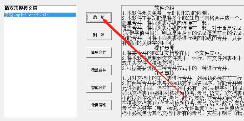 2.保证程序和表格文件在同一个文件夹之后,下一步我们就可以点击界面中的这个添加按钮了。