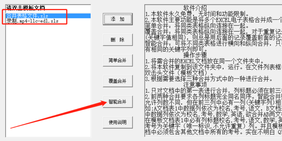 3.点击这个添加按钮之后就会识别出想要合并的表格文件了,然后下一步就是选择合并Excel文件的方式,小编就以智能合并为例来跟大家演示。