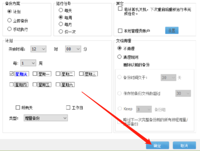 4.等到我们根据自己的需求设置好备份计划的所有参数之后,点击界面右下角的确定按钮即可完成计划设置。