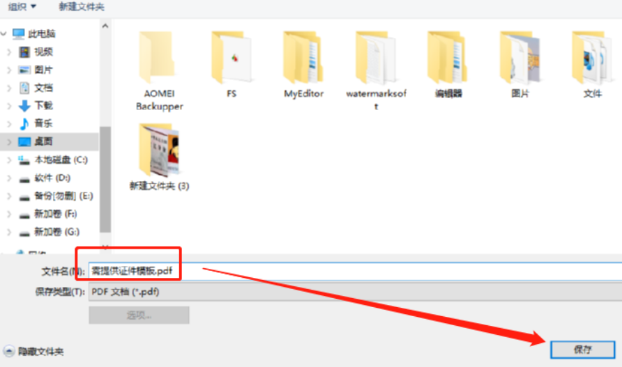 9.点击另存为之后在出现的保存文件界面选择好保存文件的位置,然后设置好名称点击保存按钮就可以将插入文本的PDF文件保存下来了。