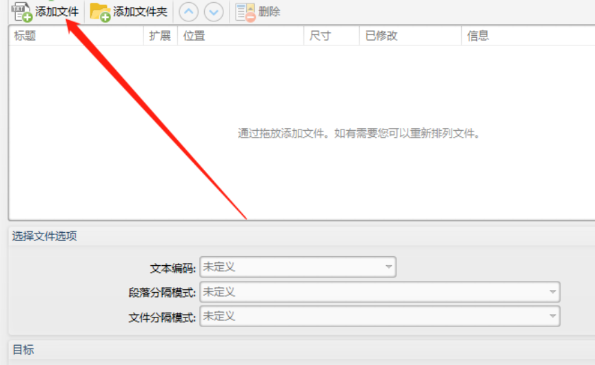 4.点击插入文本之后我们在出现的界面中就可以点击添加文件这个功能按钮了,点击之后添加需要插入的TXT文件。