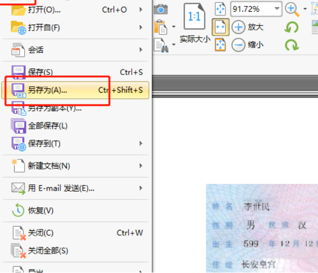 8.之后我们点击界面左上角的文件选项卡,然后在出现的界面中点击另存为这个功能选项。