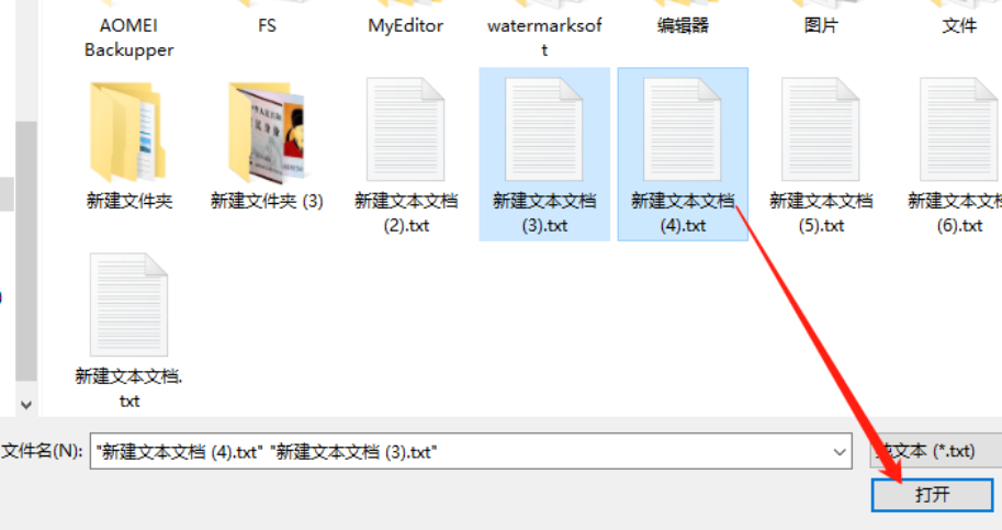 5.点击添加文件按钮之后在出现的选择文件界面中,我们选中要插入的TXT文件之后点击右下角的打开按钮。