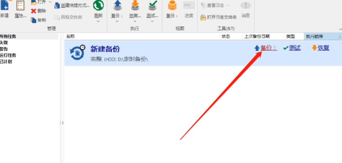 8.点击保存按钮将定时备份任务新建完成之后,在软件主界面中就可以看到这个备份任务了,我们点击界面中的备份按钮即可执行这个备份任务。
