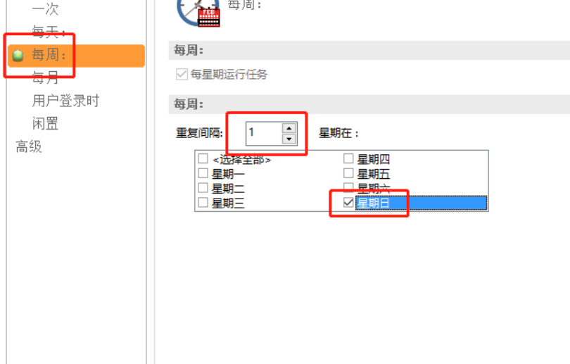 6.点击添加时间之后我们在出现界面中选择自己想要备份的时间,小编就以每周进行定时备份来跟大家演示,选择每周之后在右边界面中设置重复间隔以及在每周的星期几进行备份,设置完成之后点击确定按钮。