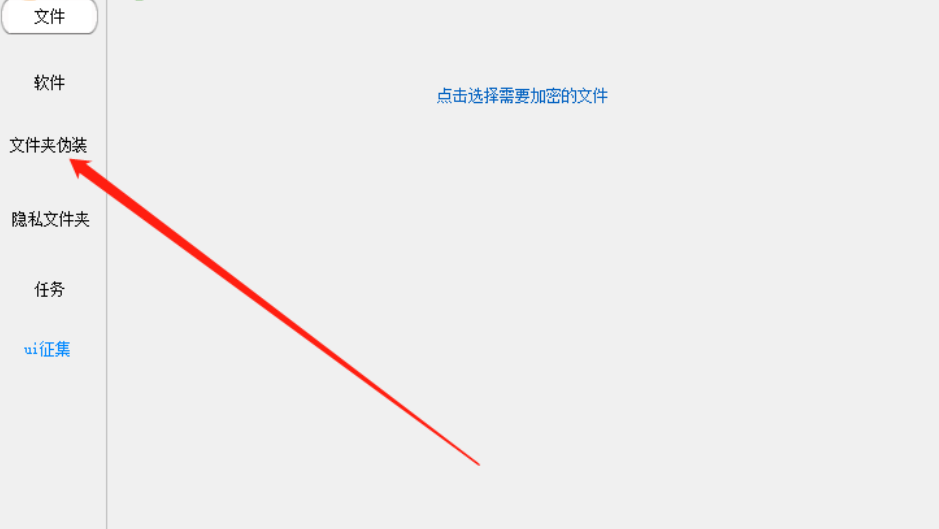 1.首先第一步我们点击打开软件界面之后,在界面左侧的列表中找到文件夹伪装这个功能,然后点击这个功能。