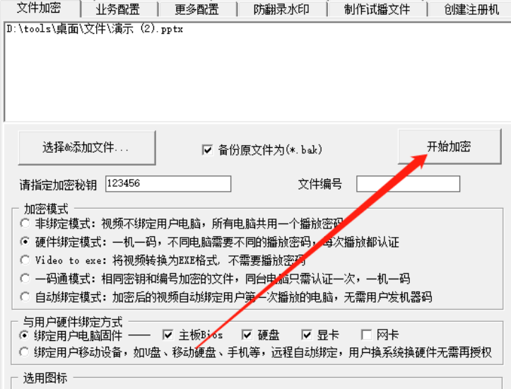 5.选择好加密模式之后我们就可以点击界面中的开始加密这个功能按钮来开始加密文件的操作了。