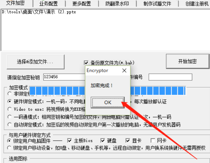 6.等到软件帮我们完成文件加密操作之后,在界面中会显示一个加密完成的提示,这样就表示文件已经成功加密了。