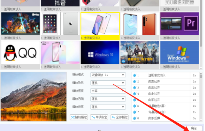 5.点击打开按钮选择好音乐之后我们可以点击设置特效图标,进入到设置特效的界面之后我们可以为每一张图片设置自己想要的特效。
