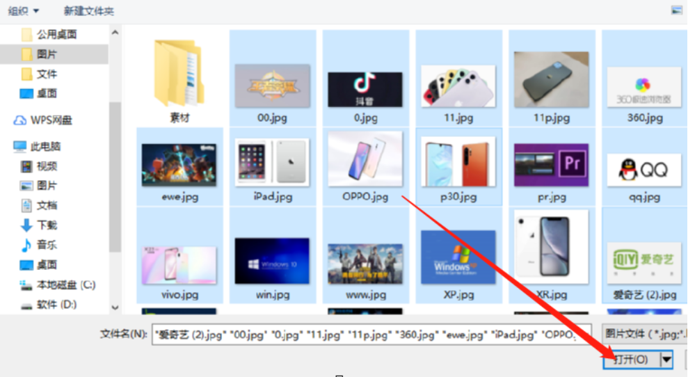 2.点击添加相片按钮之后紧接着在打开的选择文件界面中,我们选中要制作成相册的所有图片之后点击右下角的打开。