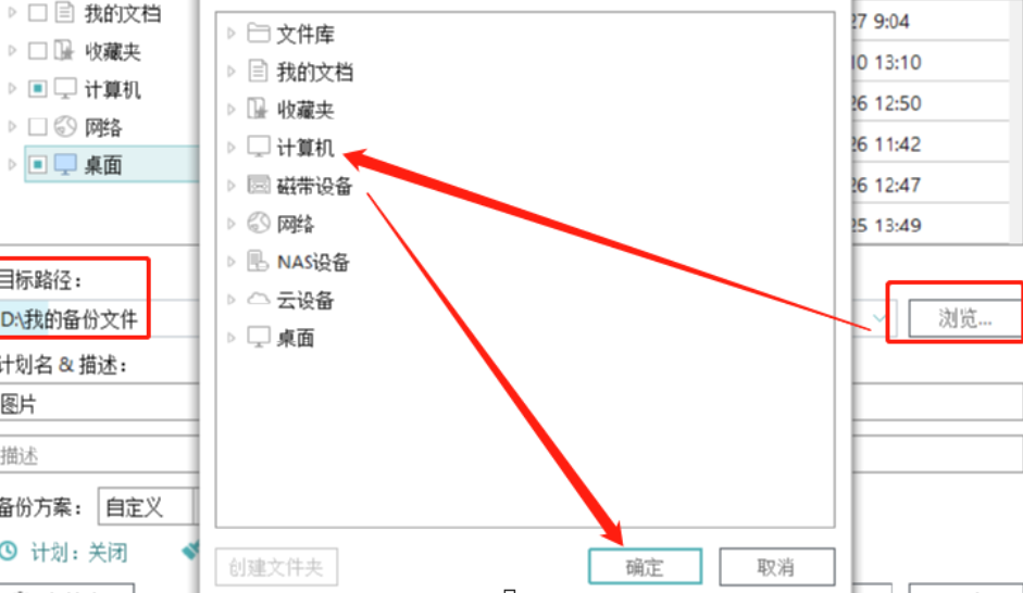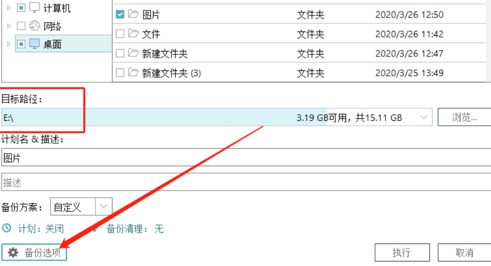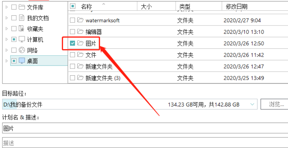 3.选择好要进行备份的文件之后,下一步是点击目标路径后面的浏览按钮来选择文件备份的目标路径,也就是备份的文件要储存到哪个位置,用户根据自己的需求选择设置即可。