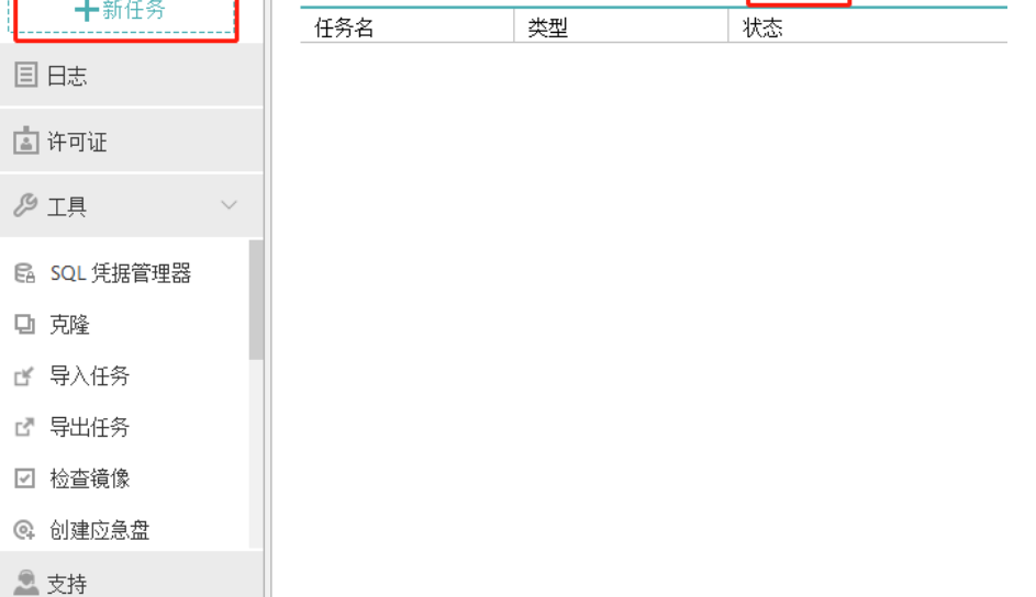 1.首先第一步我们打开软件之后在软件界面中点击新任务这个功能按钮,点击之后即可新建一个备份任务。