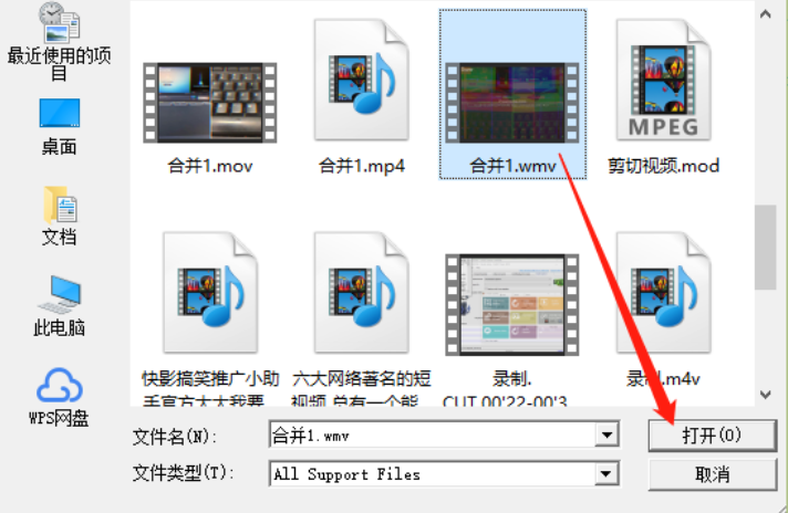 3.点击添加文件按钮之后在出现的选择文件界面中我们选中目标视频文件之后点击右下角的打开按钮。