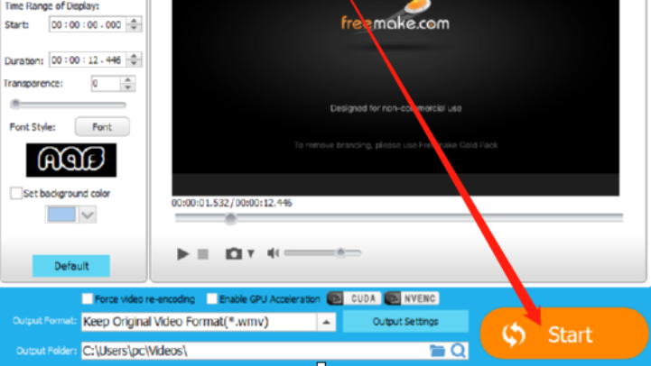 6.设置好水印样式之后在视频界面中可以看到水印的效果,然后我们点击界面右下角的这个Start开始按钮即可开始给视频添加水印的操作。