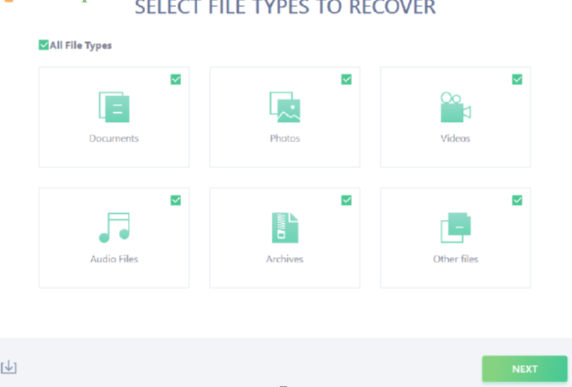 1.首先第一步我们打开软件之后是需要在界面中选择要恢复的文件类型,我们选择Videos视频文件类型之后点击右下角的下一步按钮。