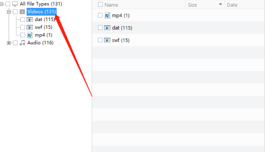3.等到扫描完成之后我们在扫描结果中切换到Type这个按类型显示文件的界面,然后我们选择打开自己想要恢复的视频文件格式查找已经被删除的文件。