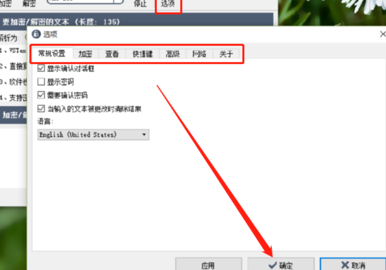3.另外我们点击界面中的选项这个图标可以打开加密文本的选项设置界面,用户可以根据自己需求来选择设置这些选项。