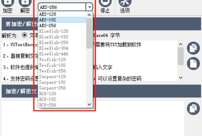 2.需要加密的文本添加成功之后,我们点击算法的下拉列表可以选择想要使用的加密算法。