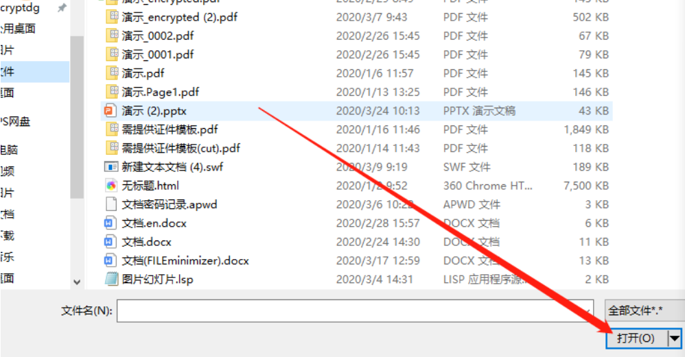 4.点击加号之后我们在选择文件的界面中选中需要加密的文件之后点击右下角的打开按钮即可。