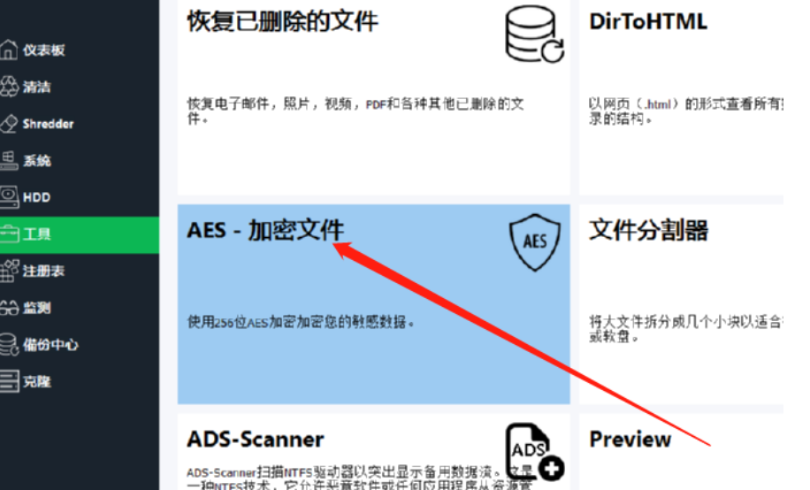 2.点击进入到工具界面之后我们就可以看到加密文件这个功能选项了,然后我们使用鼠标点击进入到其中。