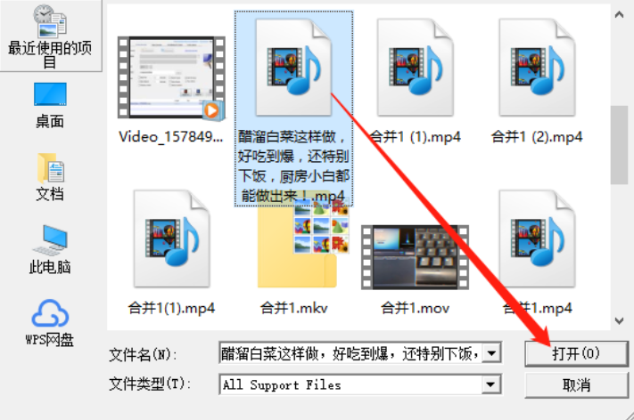 3.点击添加文件按钮之后在打开的选择文件界面中,我们选中目标文件之后点击右下角的打开按钮。