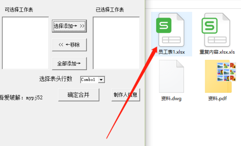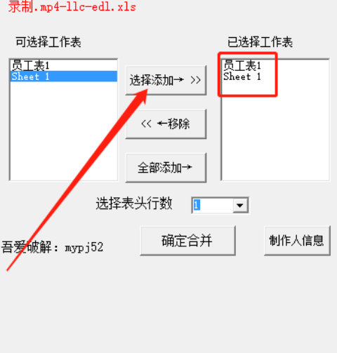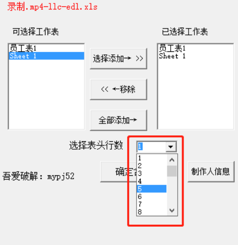 4.将需要合并的Excel文件添加到已选择工作表这一列之后,我们点击下方的选择表头行数这个下拉列表可以根据自己的需要来选择合并的表头行数。