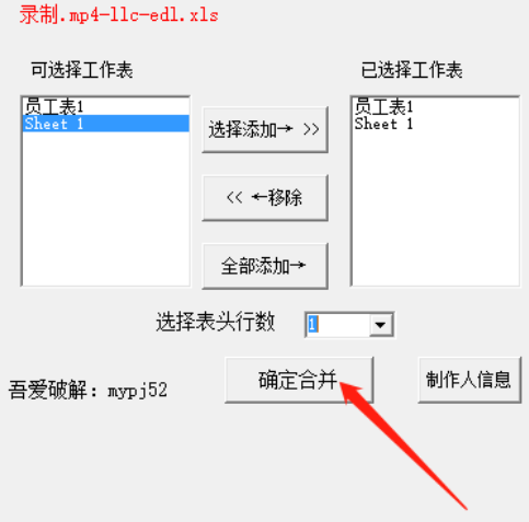 5.最后我们在选择好合并的表头行数之后只需要点击界面中的确定合并这个功能按钮就可以开始合并Excel文件的操作了。