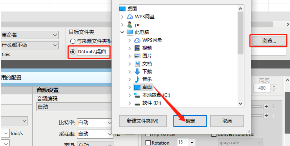 4.紧接着下一步我们在目标文件夹这个模块中可以自定义文件输出路径,点击界面中的浏览按钮之后在出现的界面中就可以选择文件转换之后的输出路径了。