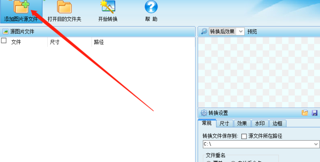 1.首先第一步我们点击打开软件界面之后点击界面左上角的添加图片源文件这个功能按钮,点击之后即可选择图片。