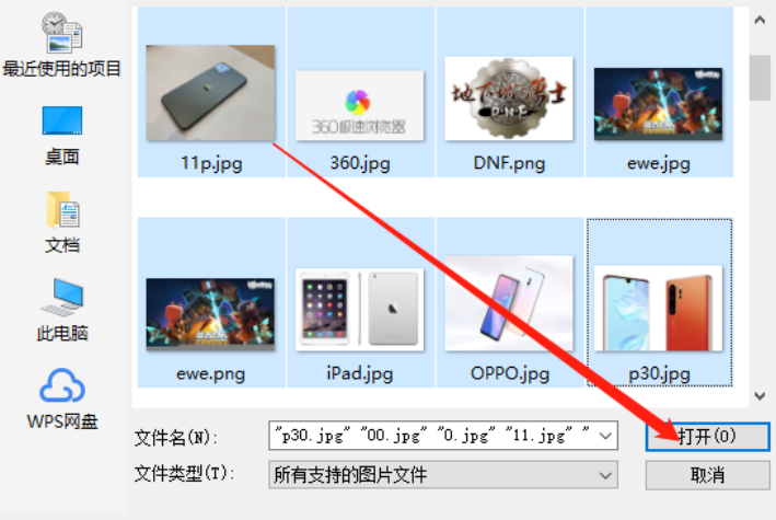 2.紧接着下一步我们就可以在出现的界面中选择想要添加水印的图片文件了,在出现的界面选中所有文件之后点击打开按钮即可。